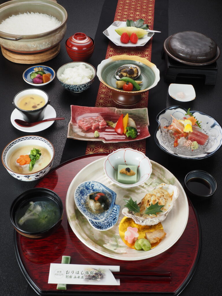 - あおさ仕立 天然蛤吸 舞茸 すかし大根 木の芽